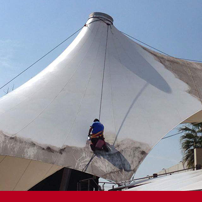 LIMPIEZA DE VELARIAS. Limpieza de velarias utilizando emulsificantes que encapsulan la suciedad sin dañar la superficie.